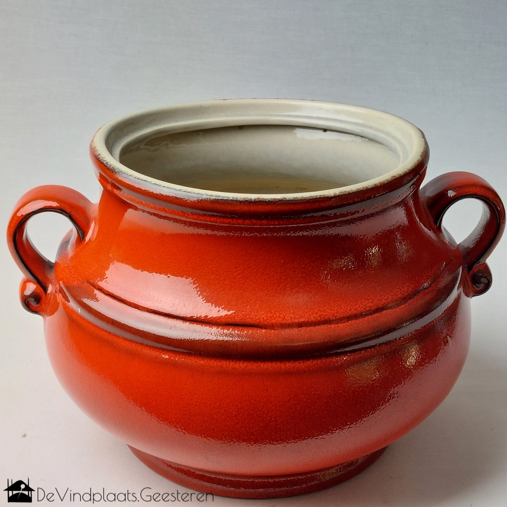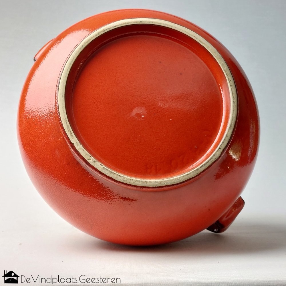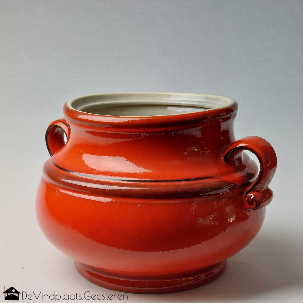 Prachtig glanzend rood glazuur met donkere randen en knopgevormde oren.
